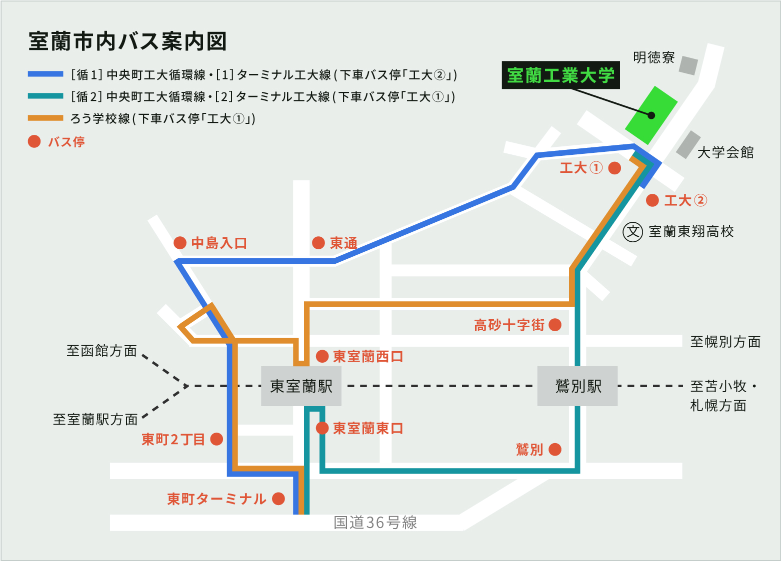 【室蘭市内線】中央町工大循環線、工大循環線・ろう学校線の時刻・料金などの詳細はこちら